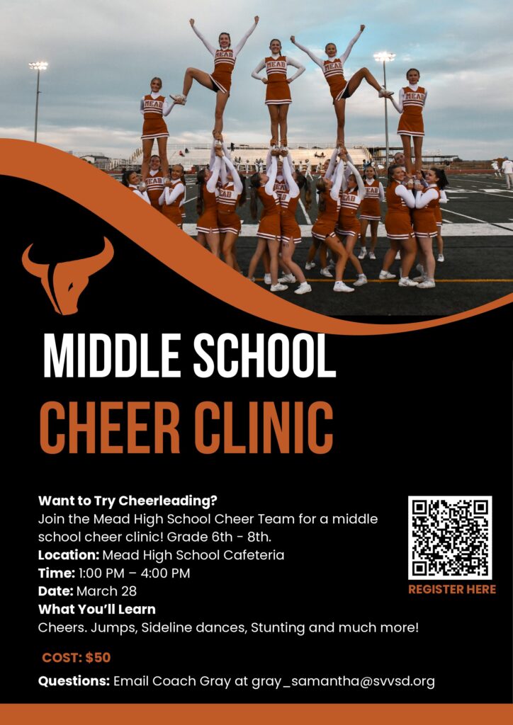 Logo of Mead Middle School featuring a bulldog mascot and the school name in orange and black text.