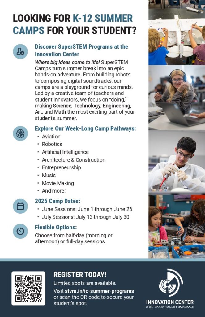 Over two thousand community members came together on Saturday, March 7, for St. Vrain Valley Schools’ first-ever Future Ready Festival at Silver Creek High School. Families and community members filled the campus throughout the afternoon, engaging with educators, asking questions, and exploring innovative programs and opportunities available across the district. The festival featured Advantage Zones […]
